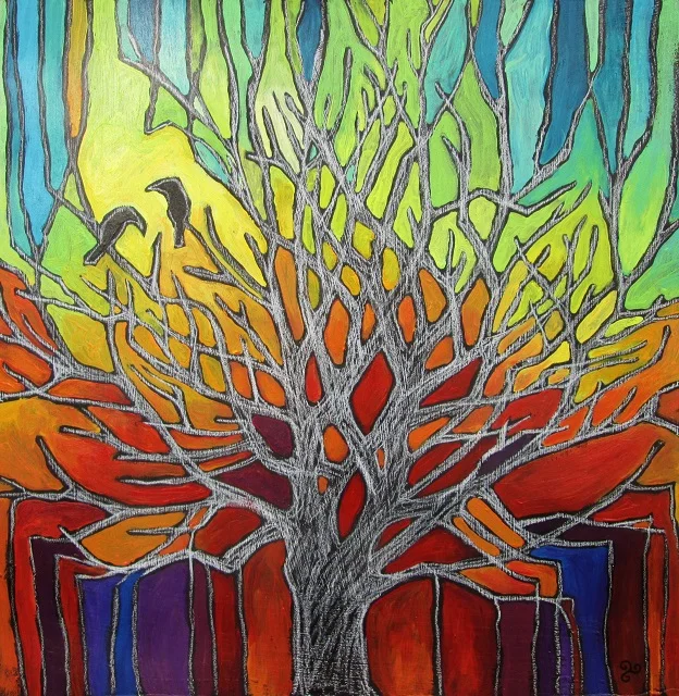 Brilliant colors, imagery inspired by dreams and nature, acrylic on canvas and murals